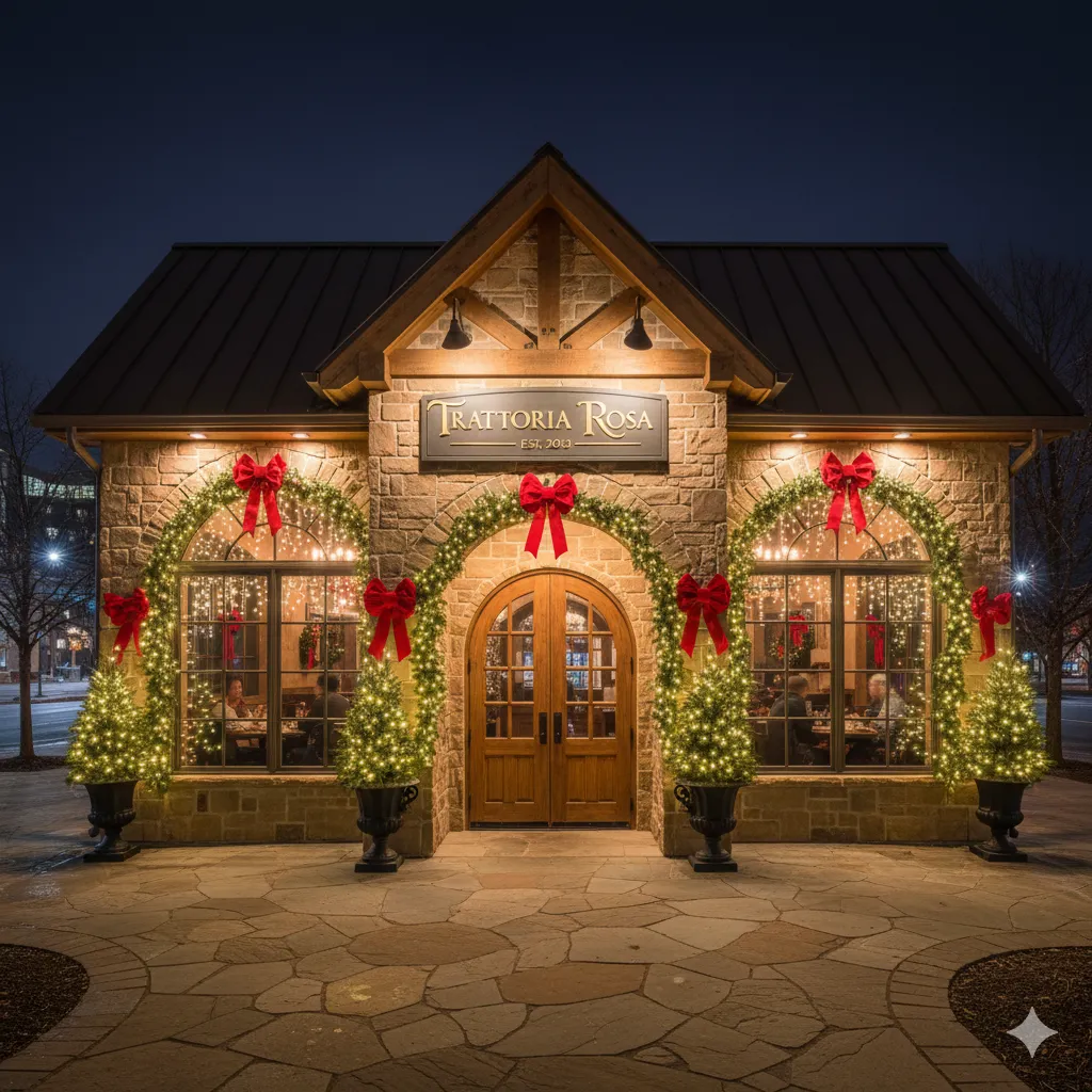 We specialize in creating magical holiday and year-round displays for restaurants, offices, hotels, dealerships, HOAs, and all businesses, Christmas villages, walk-throughs, and more.